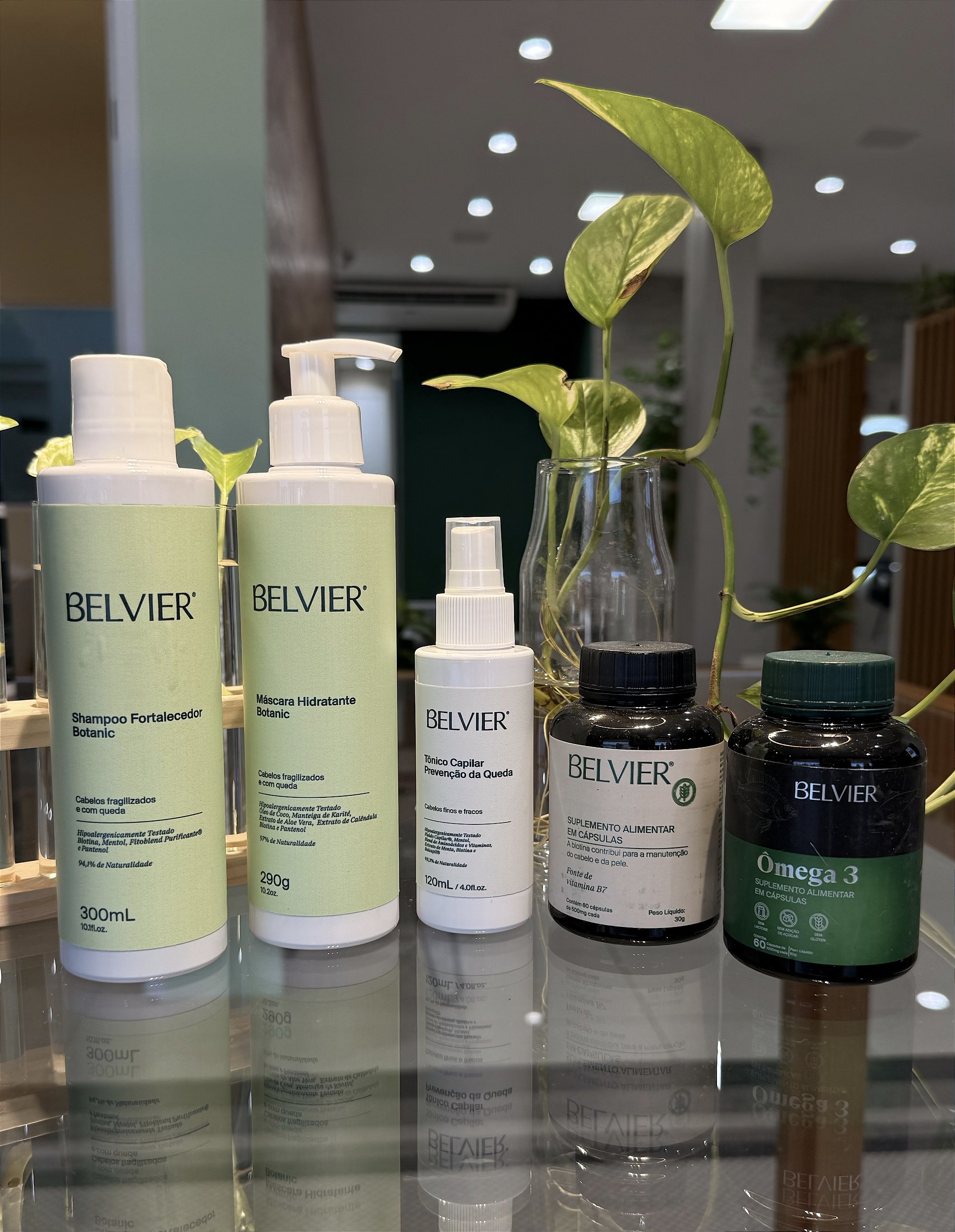 Pensando nisso, a Belvier desenvolveu um tratamento completo que atua de forma integrada, profunda e eficaz, cuidando do seu cabelo de dentro pra fora.